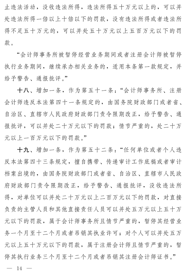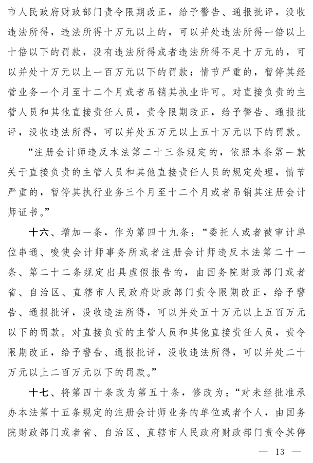十四屆全國(guó)人大常委會(huì)第二十一次會(huì)議對(duì)《中華人民共和國(guó)注冊(cè)會(huì)計(jì)師法(修正草案)》進(jìn)行了審議。現(xiàn)將《中華人民共和國(guó)注冊(cè)會(huì)計(jì)師法(修正草案)》公布,社會(huì)公眾可以直接登錄中國(guó)人大網(wǎng)(www.npc.gov.cn)或國(guó)家法律法規(guī)數(shù)據(jù)庫(kù)(flk.npc.gov.cn)提出意見(jiàn),也可以將意見(jiàn)寄送全國(guó)人大常委會(huì)法制工作委員會(huì)(北京市西城區(qū)前門(mén)西大街1號(hào),郵編:100805。信封上請(qǐng)注明注冊(cè)會(huì)計(jì)師法修正草案征求意見(jiàn))。征求意見(jiàn)期限為30日。